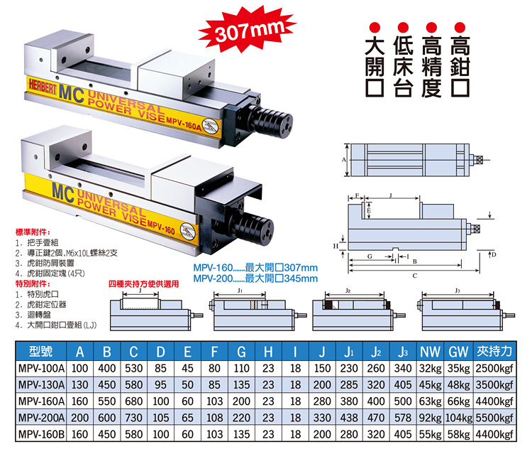 vises, exterior angle-lock power vises, horizontal hydraulic vises, tilting hydraulic vises, light-duty drill grinders, multi-clamp