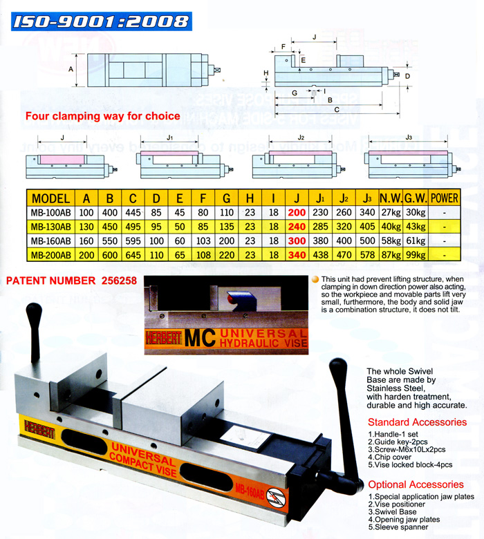 vises, exterior angle-lock power vises, horizontal hydraulic vises, tilting hydraulic vises, light-duty drill grinders, multi-clamp