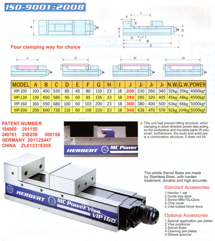 Super Open Type Vise VIP-100, VIP-130, VIP-160, VIP-200