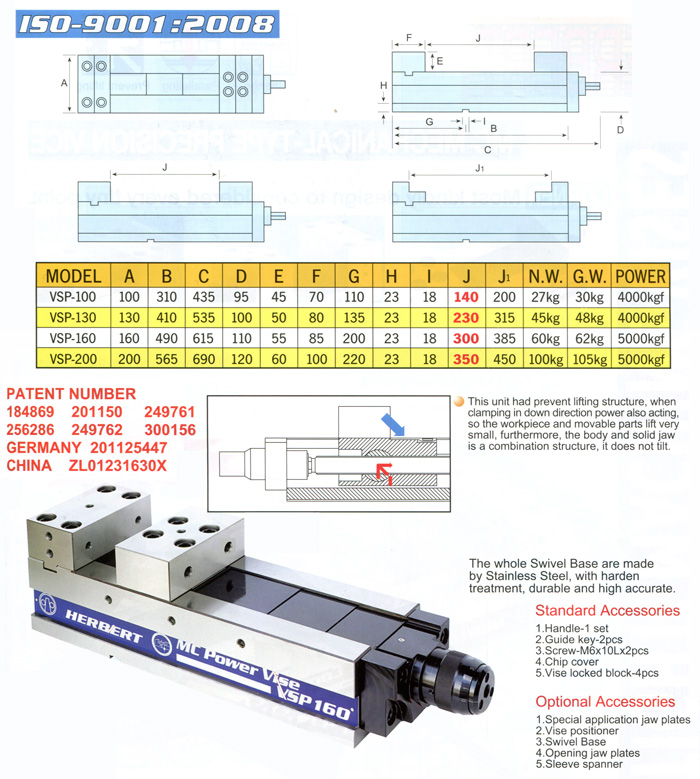 vises, VSP pressure-setting power vises, VIP pressure-setting power vises, and hydro-pneumatic power mechanisms (with